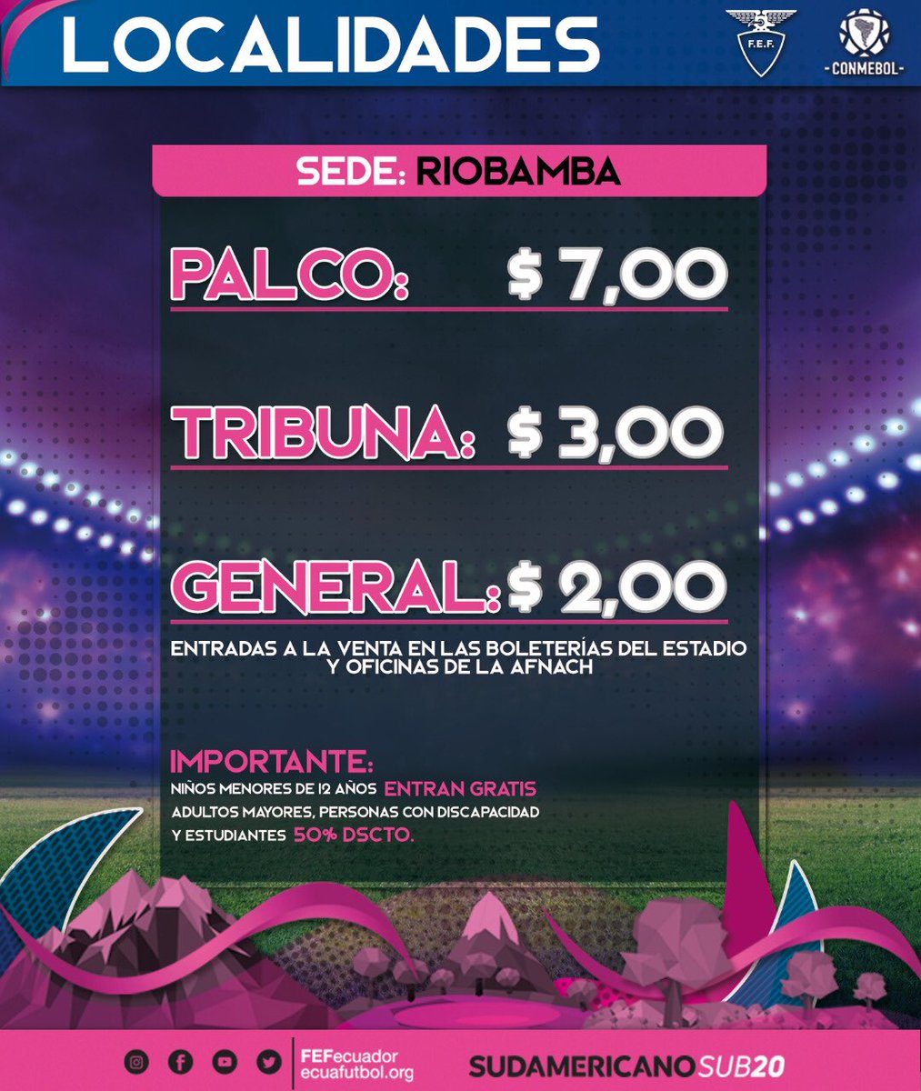 ¡Precios de las entradas para disfrutar del Campeonato Sudamericano Sub 20 Femenino #Ecuador2018 en #RIOBAMBA que arranca este sábado! Precios asequibles para que nadie se quede en casa ???⚽️ #SudFemeninoEC